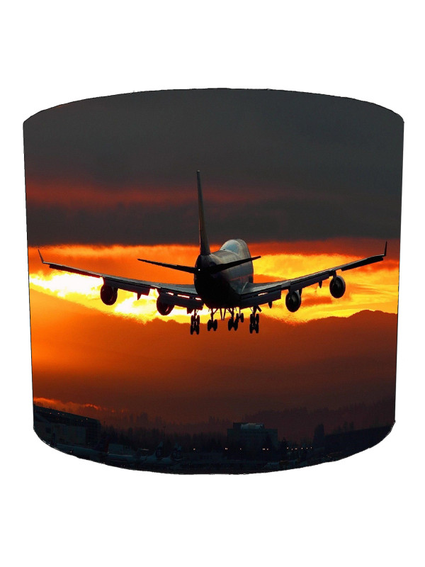 747 Jumbo Jet Airplane Sunset Landing Drum Lampshade