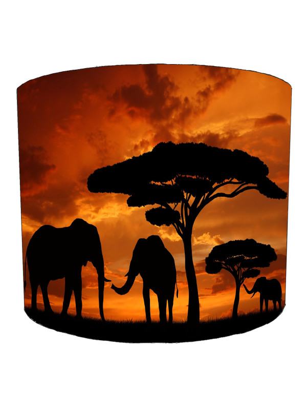 Silhouette Elephants In The Sunset Lampshade